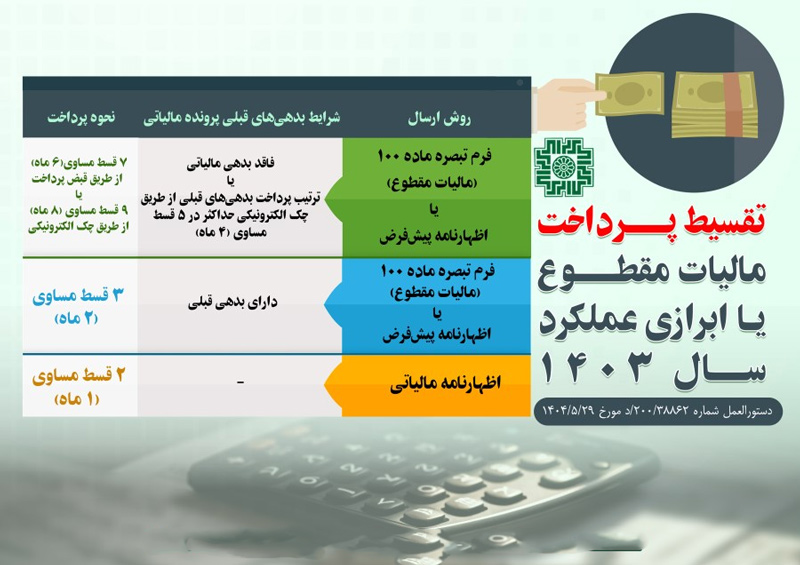 تفویض اختیار تقسیط مالیات ابرازی عملکرد سال 1403 اشخاص حقوقی