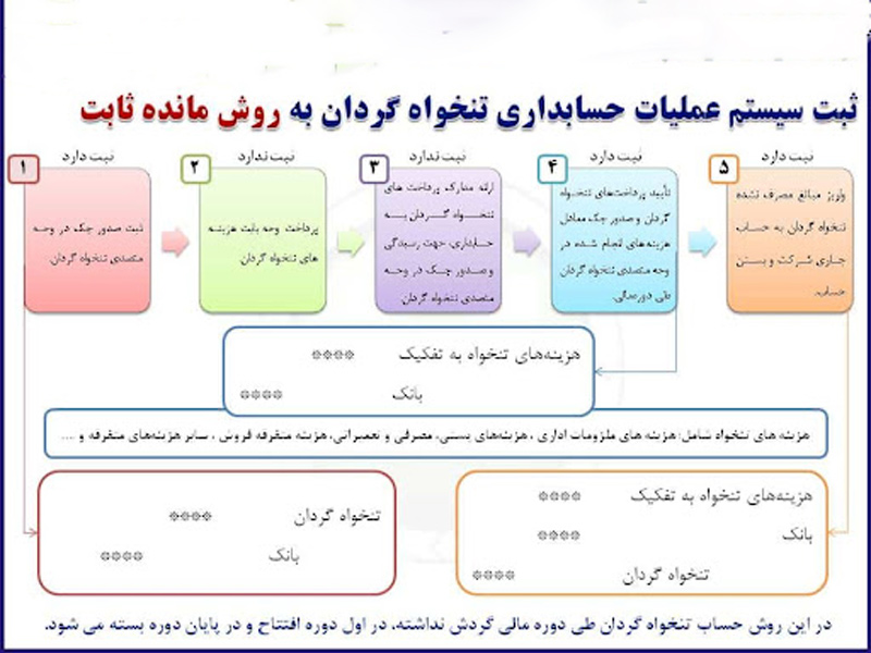 مبلغ تنخواه از ابتدا ثابت است و همواره باید همان مقدار در حساب موجود باشد.