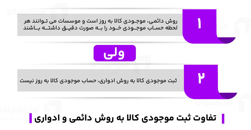 روش های نگهداری موجودی کالا در حسابداری به دو روش دائمی و ادواری میباشد